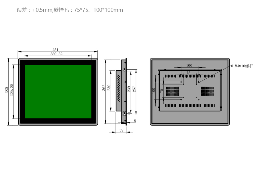 | 工作溫度 | -20℃-70℃ | 可視尺寸 | 380mm*305mm |